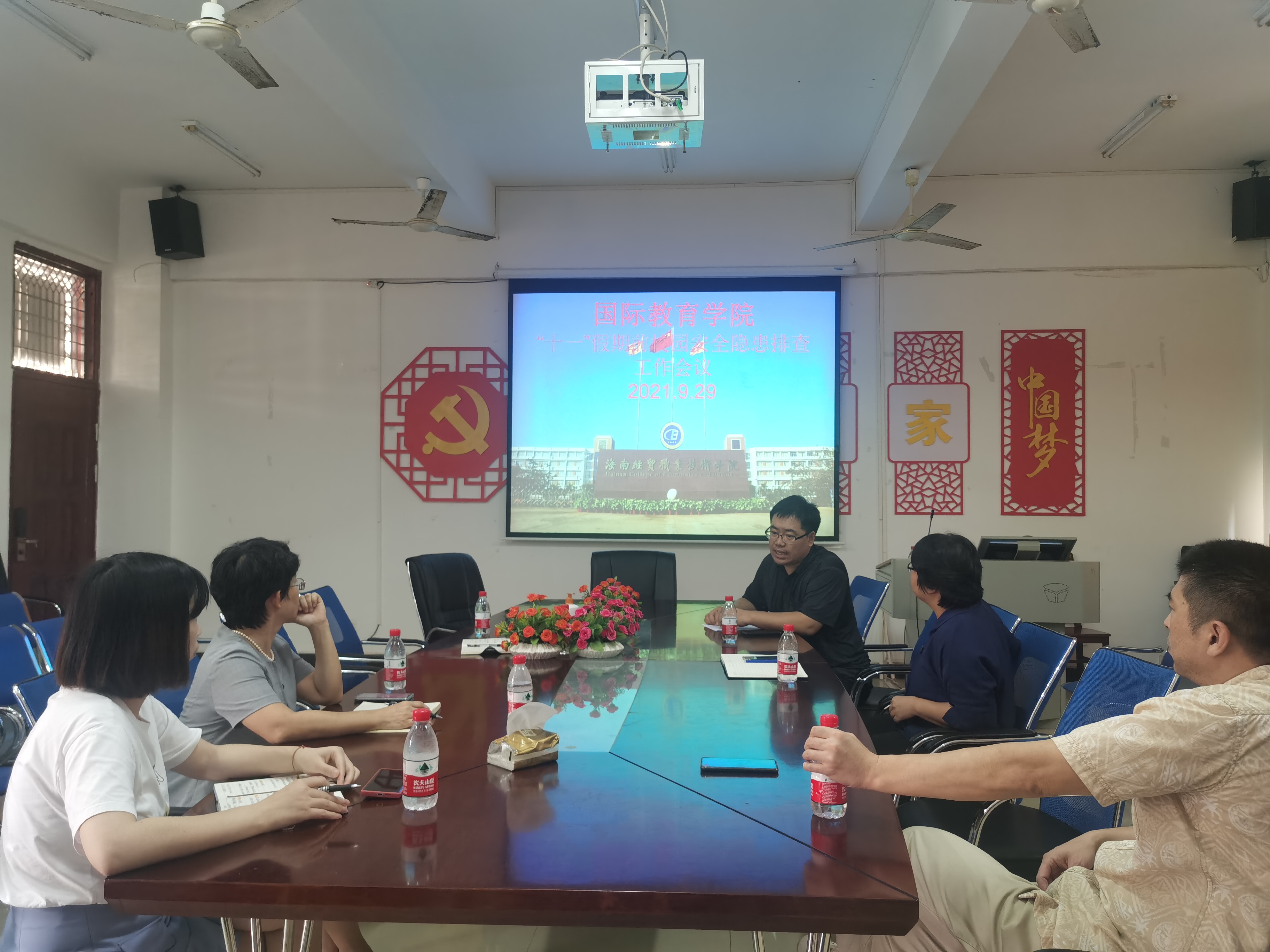 于勇书记与大家共同学习了《海南省教育厅关于做好中秋国庆假期公司安全工作的通知》(琼教安〔2021〕104号)文件要求和公司2021年国庆节假期安全工作会议精神,希望大家贯彻落实公司要求,完善公司安全事故预防与处理机制,建立多部门协调配合工作机制,解决公司后顾之忧,保护师生生命安全。他还要求公海gh555000aa线路检测在国庆假期期间进一步加强疫情信息排查和舆情引导,要严细开展师生疫情信息监测,提升师生行程轨迹和健康信息精准度与时效性,要加强校园疫情防控工作和公司返校复课各项工作的宣传报道和思想政治引领工作。