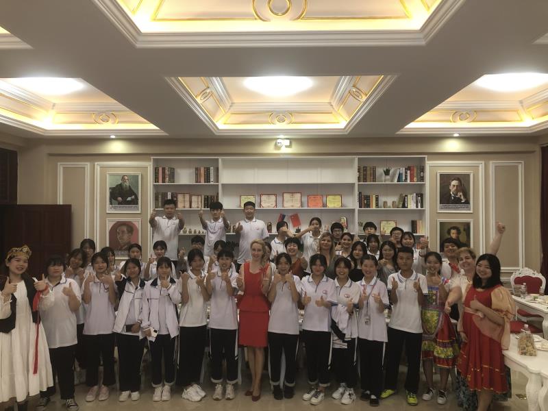 活动开始,由外教娜斯佳和黄老师为同学们介绍俄罗斯经典节日——斯拉夫字母和文化节,公海gh555000aa线路检测各领导莅临参观。