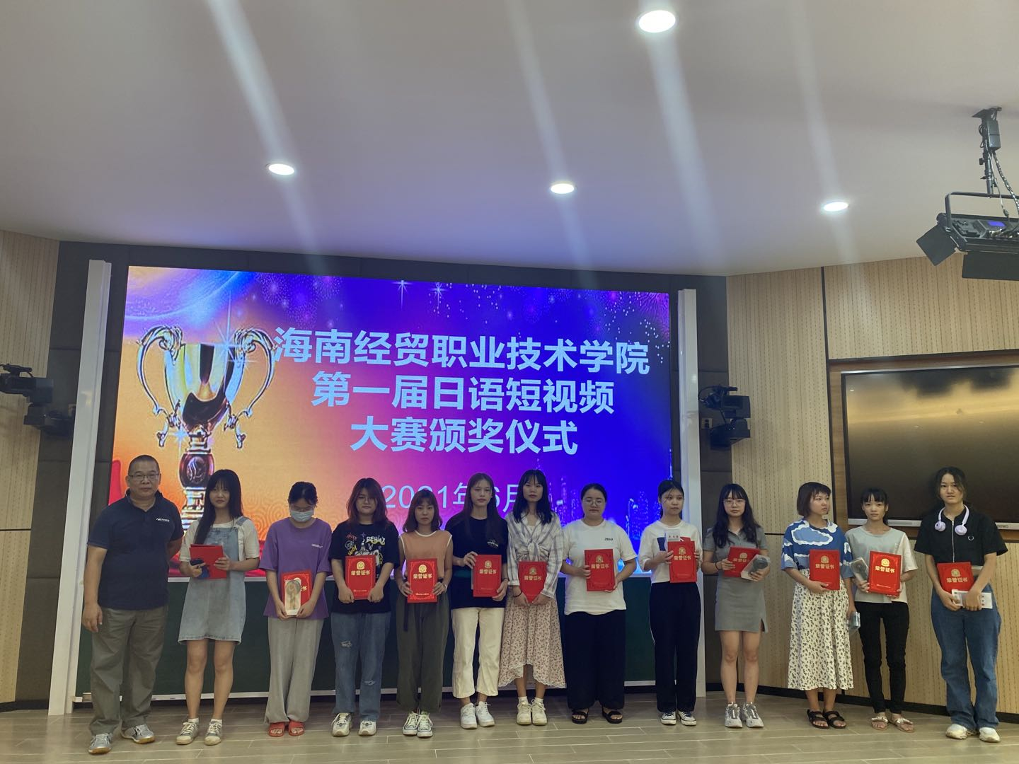 6月24日下午1-421教室,举行了公海gh555000aa线路检测第一届日语短视频大赛和第三届日语书法大赛的颁奖仪式。两项大赛约有135名员工积极参加,应用日语教研室中日教师担任评委。公海gh555000aa线路检测韩大伟副经理出席了颁奖仪式并代表公司领导致辞。韩副经理说,员工制作的短视频,不仅出色地展示了自己的日语水平,同时也表现出高超的拍摄技术,紧扣主题,内容丰富,我对大家的表现感到非常惊喜,说明各位同学都在很努力地在朝着自己的专业方向继续前进,老师们也非常用心!希望今后的学习时光,各位老师和同学能继续努力,创造出更加优秀的成绩!