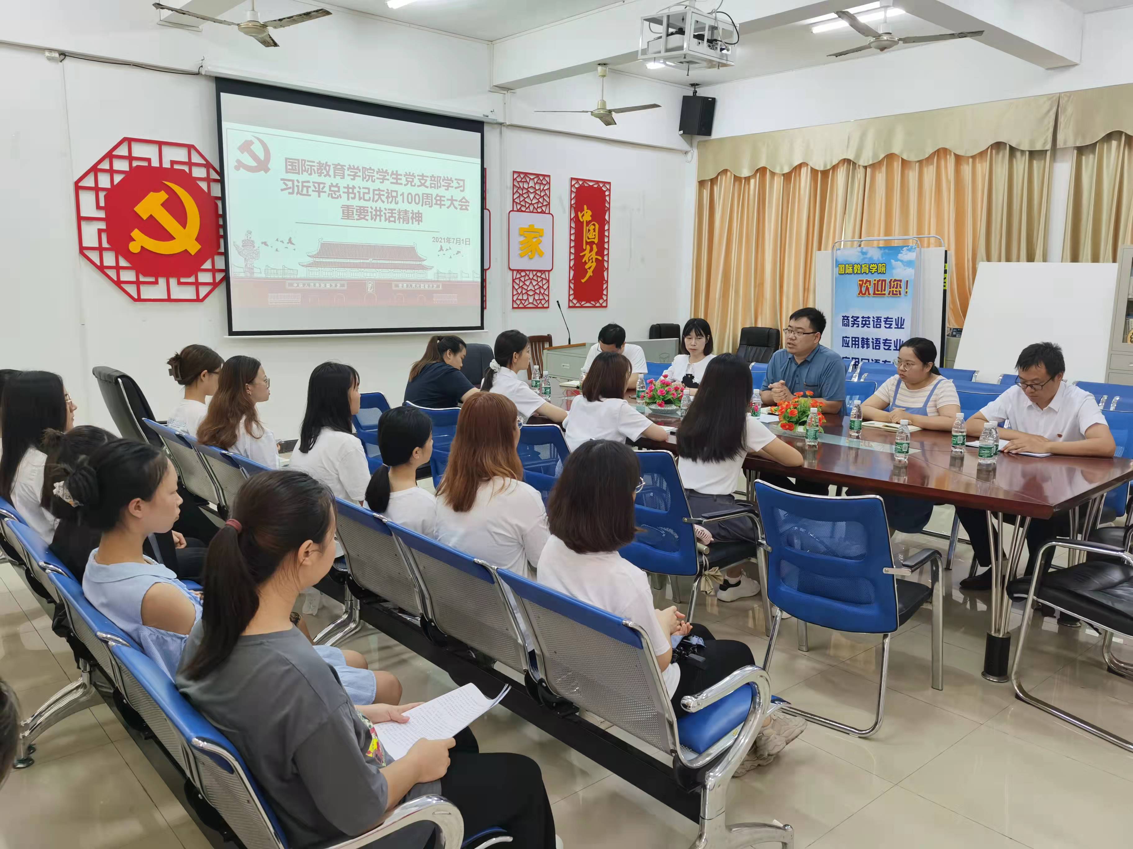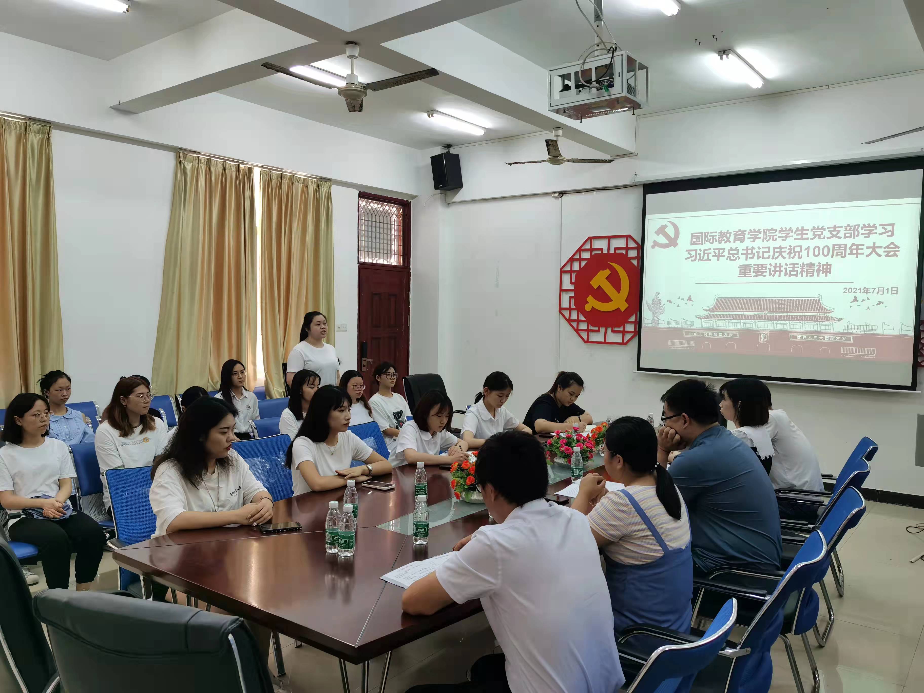 首先,党支部书记郑艳从习近平总书记讲话稿的一组关键词:一个庄严宣告、一个主题、四个伟大成就、一个伟大精神、九个必须、一个殷切期望和一个号召入手,带大家再次回顾百年建党史、展望可期可待的未来宏图,特别号召广大青年要不辜负习近平总书记的殷切期望,要以实现中华民族伟大复兴为己任,增强做中国人的志气、骨气、底气,不负时代,不负韶华。