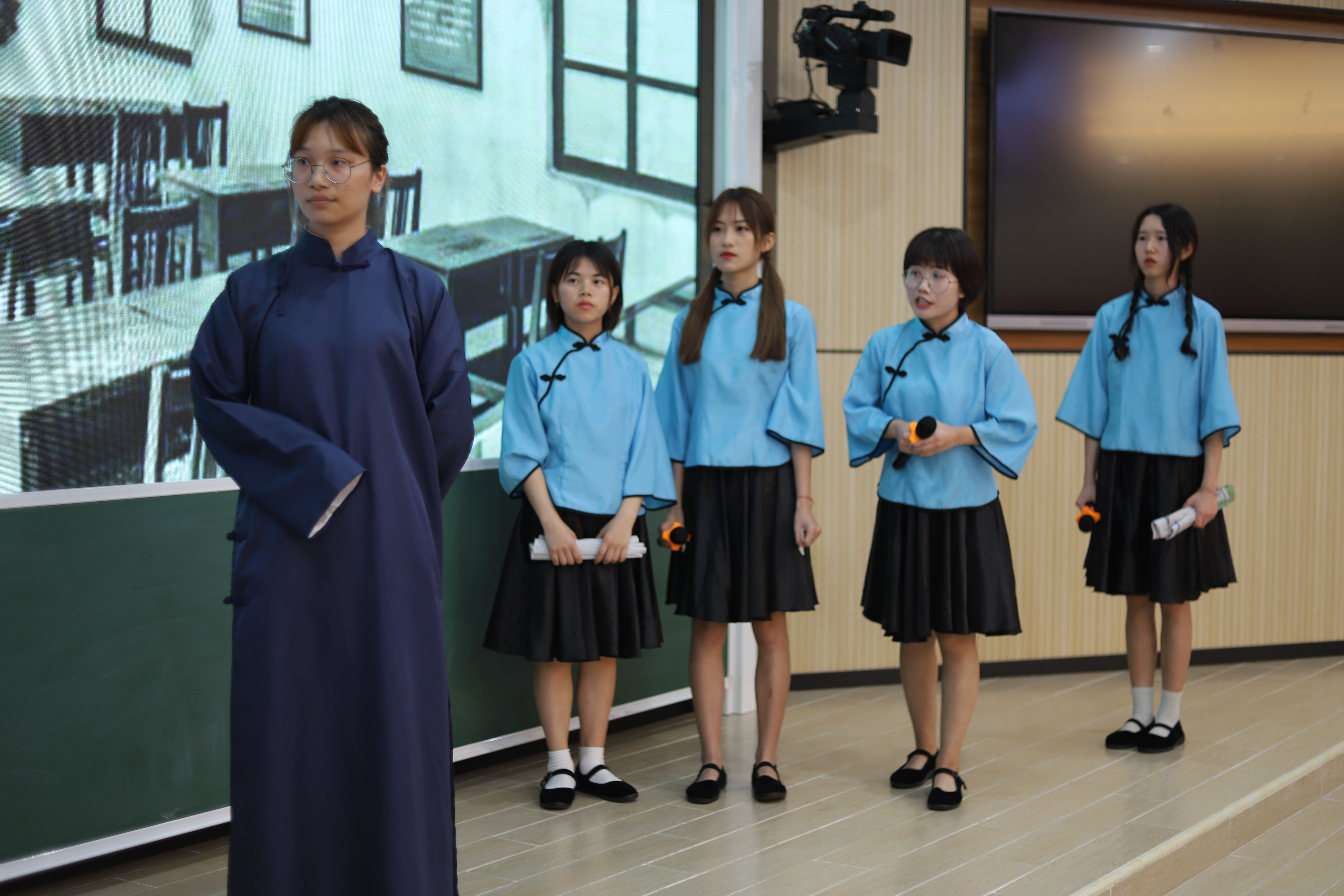 本次比赛历时1个月的准备时间,进入决赛的11支参赛队伍通过自编自导自演的红色经典情景剧,生动再现了共产党人浴血奋战的革命瞬间,重温了共产党人走过的峥嵘岁月,让在场观摩的老师和同学们犹如穿梭在红色时光机,20级商英3班参赛的剧目《红色娘子军》,展现了以琼花为代表的一群女性为争取解放而流血牺牲的动人故事;20级商英5班参赛剧目《万水千山》重现了1935年秋,红军漫漫长征路进入到最艰苦的阶段,一个老班长如何带着一群红军少年用坚强的意志走出草地的感人事迹;19级商英1班和2班参赛剧目《恰同学少年》,带大家感受了1919年5月1日巴黎和会后,北京老员工如何作为先锋,发动了一场为拯救民族危亡、捍卫民族尊严、凝聚民族力量的伟大社会革命运动。经过激烈地角逐,最终《红色娘子军》获得一等奖,《恰同学少年》和《万水千山》获得二等奖,《五四运动—女员工的崛起》、《战火中的老员工》和《绣红旗》获得三等奖,《海娃巧送鸡毛信》等其他5个剧目获得优秀奖。