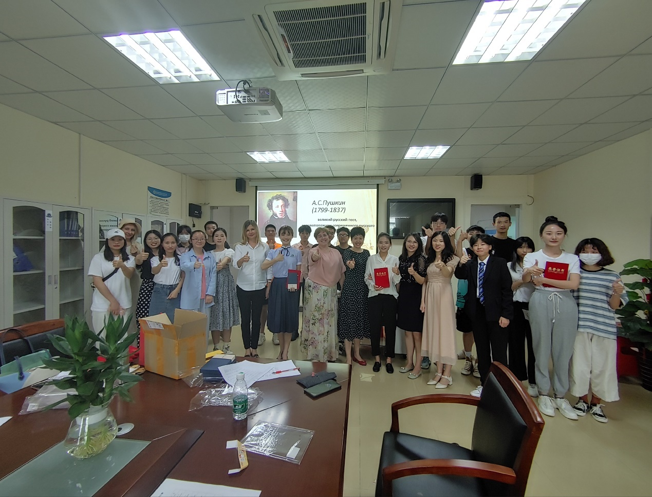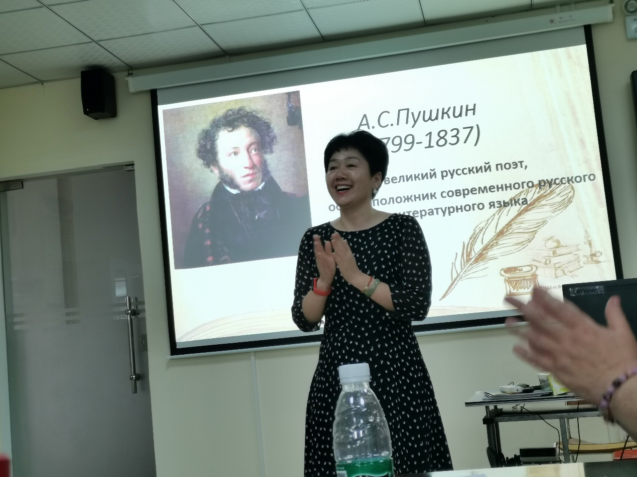 本次比赛选取的是俄罗斯伟大诗人,现代俄语奠基人普希金的诗歌。外籍教师阿纳斯塔西娅向员工们详细介绍了诗人普希金及其在俄罗斯的重要地位,俄语教师黄梓瑶进行翻译。