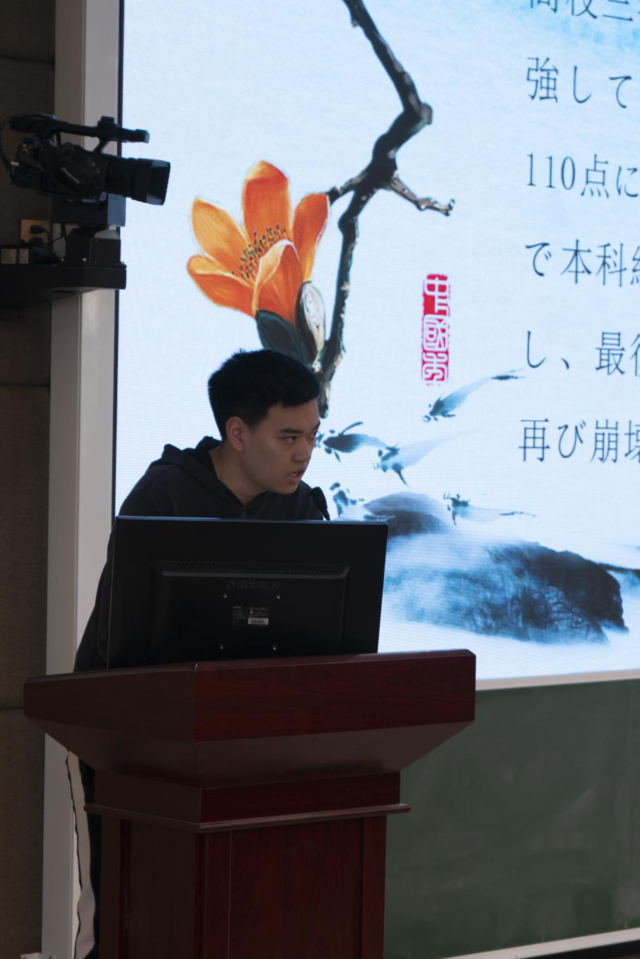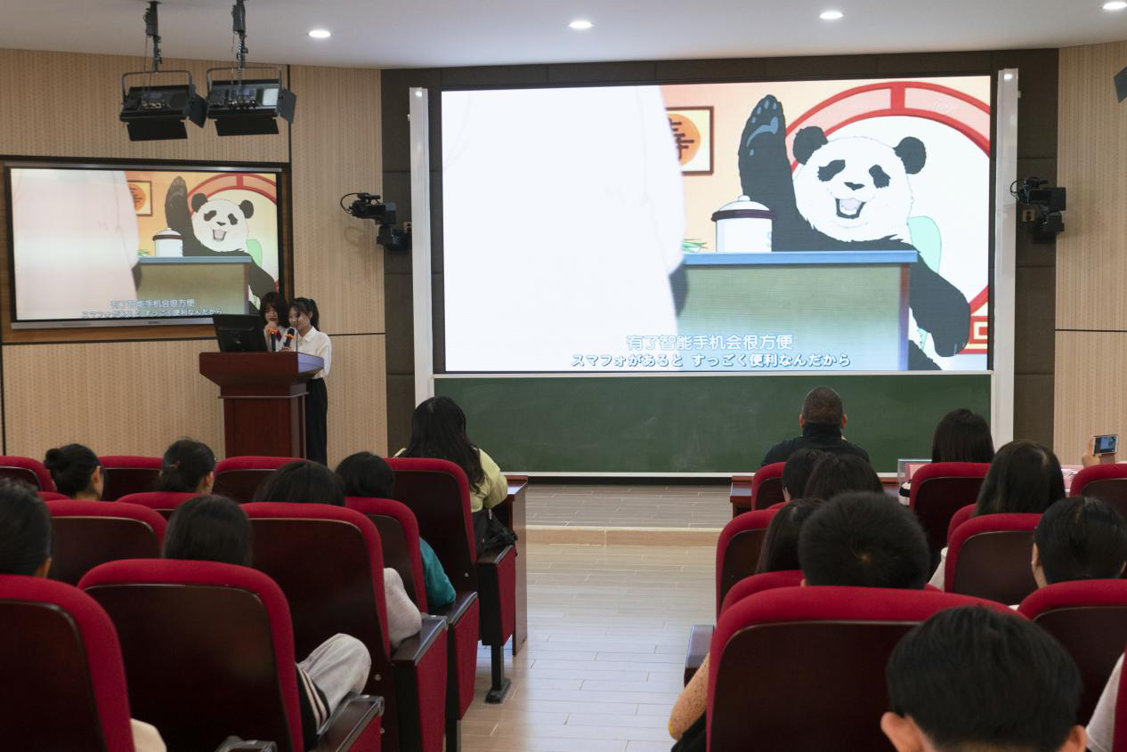 赛后统分期间,张圆圆,邹瑞萌,胡毅彬,潘海柱四位同学的日语配音秀更是特色十足,现场妙趣横生,笑料频出,为比赛增添了一抹轻松和谐的氛围。