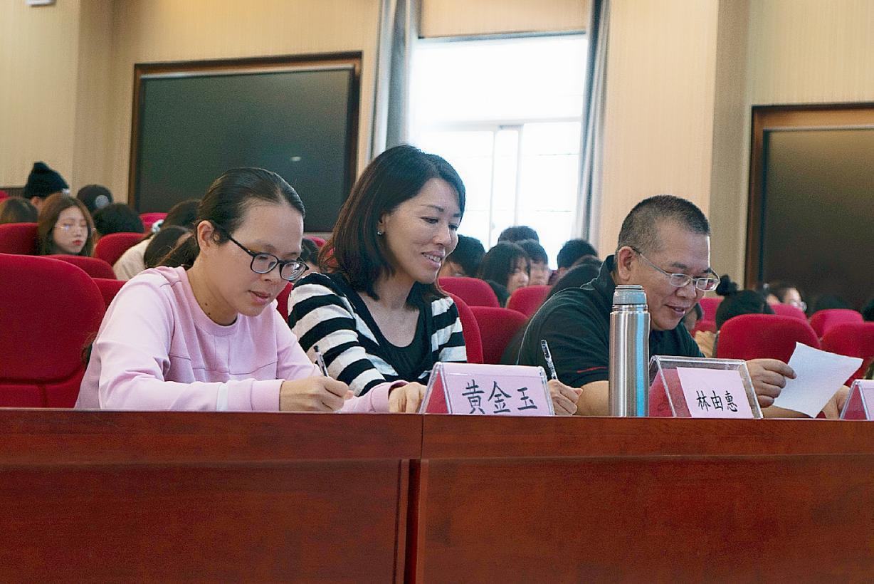 本次比赛评委老师(从左至右):黄金玉老师 外教HAYASHI YOSHIE老师 王耀义老师