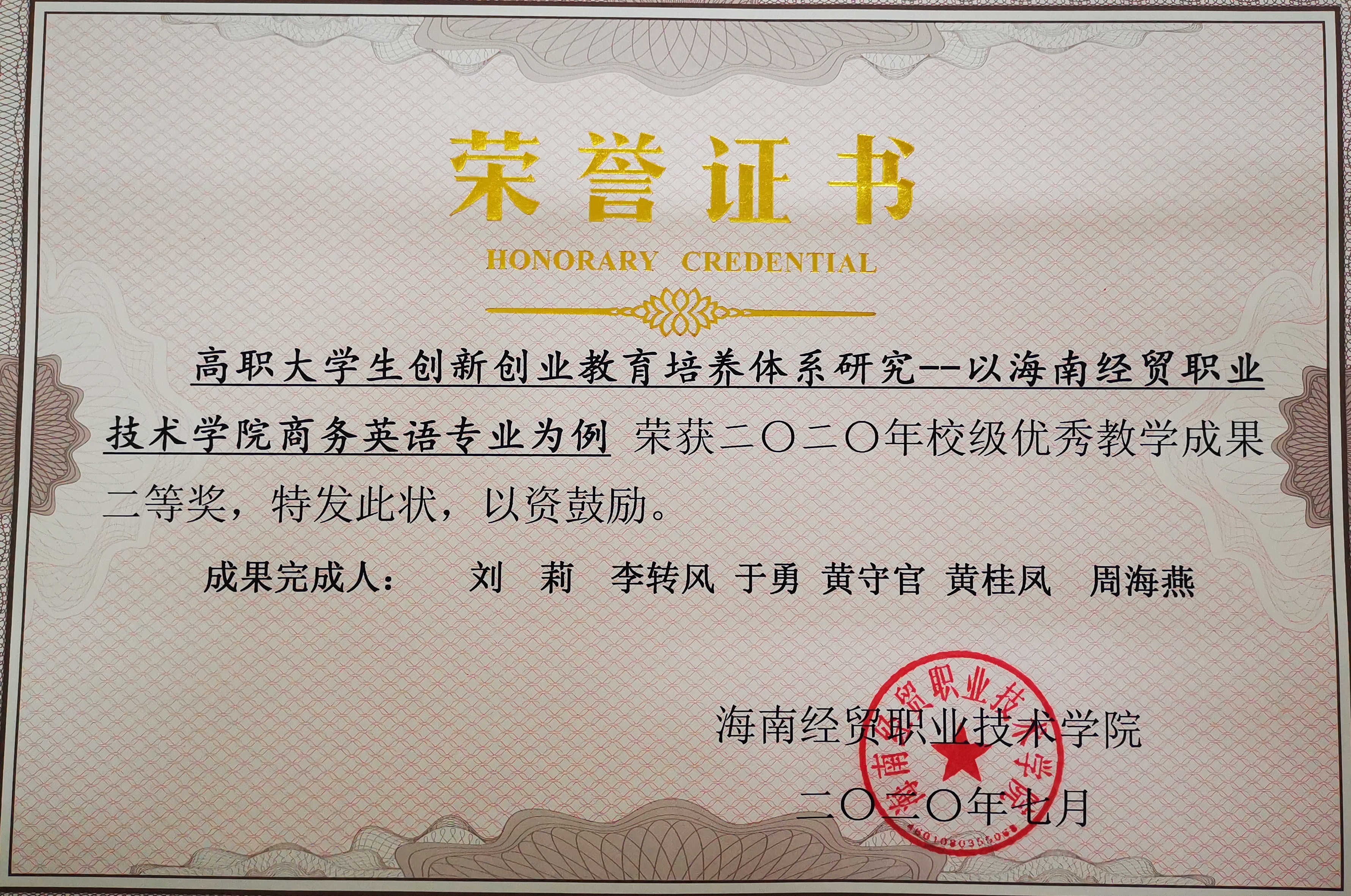 2020年度公海gh555000aa线路检测校级优秀教学成果奖已公示,公司刘莉老师团队、段惠芳老师团队均获评二等奖。