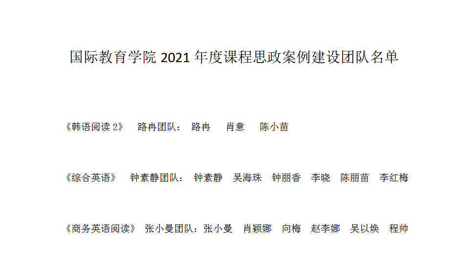 2021年度课程思政案例建设团队名单