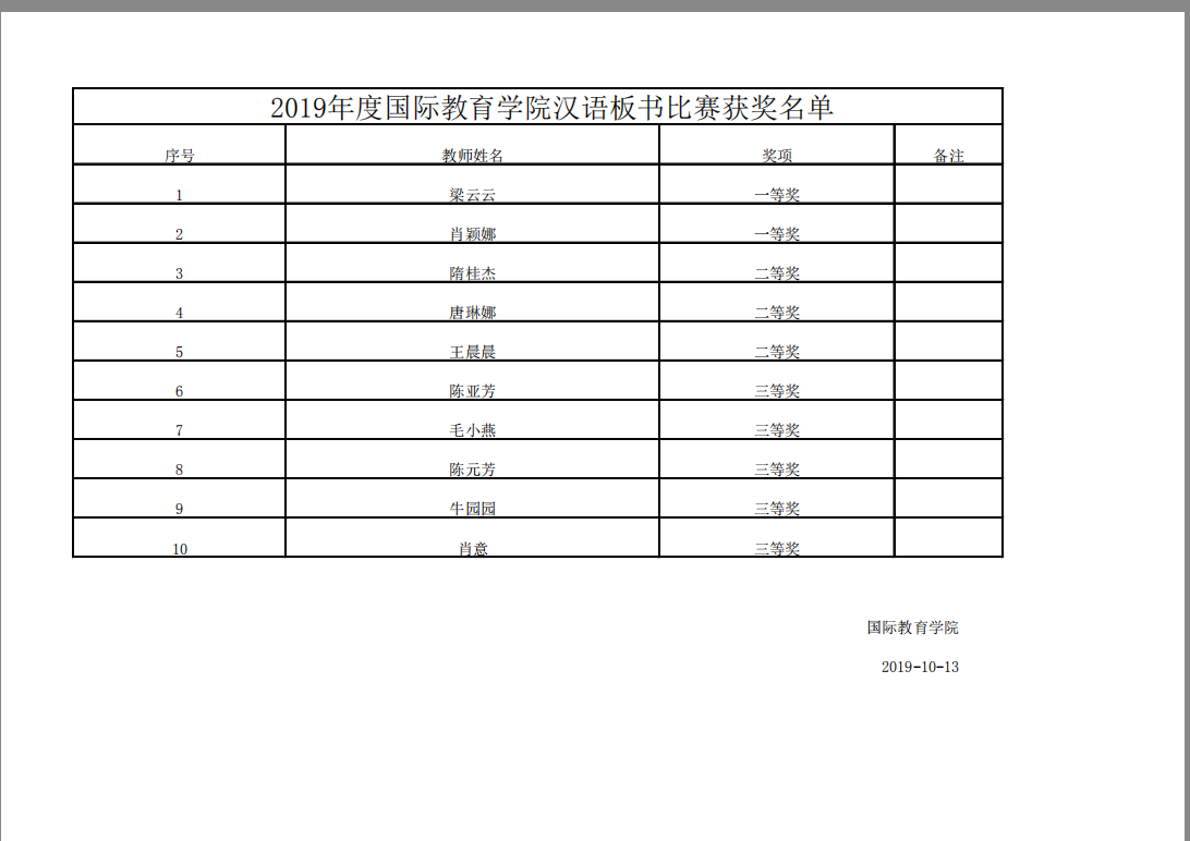 2019年度公海gh555000aa线路检测汉语板书比赛获奖名单公告