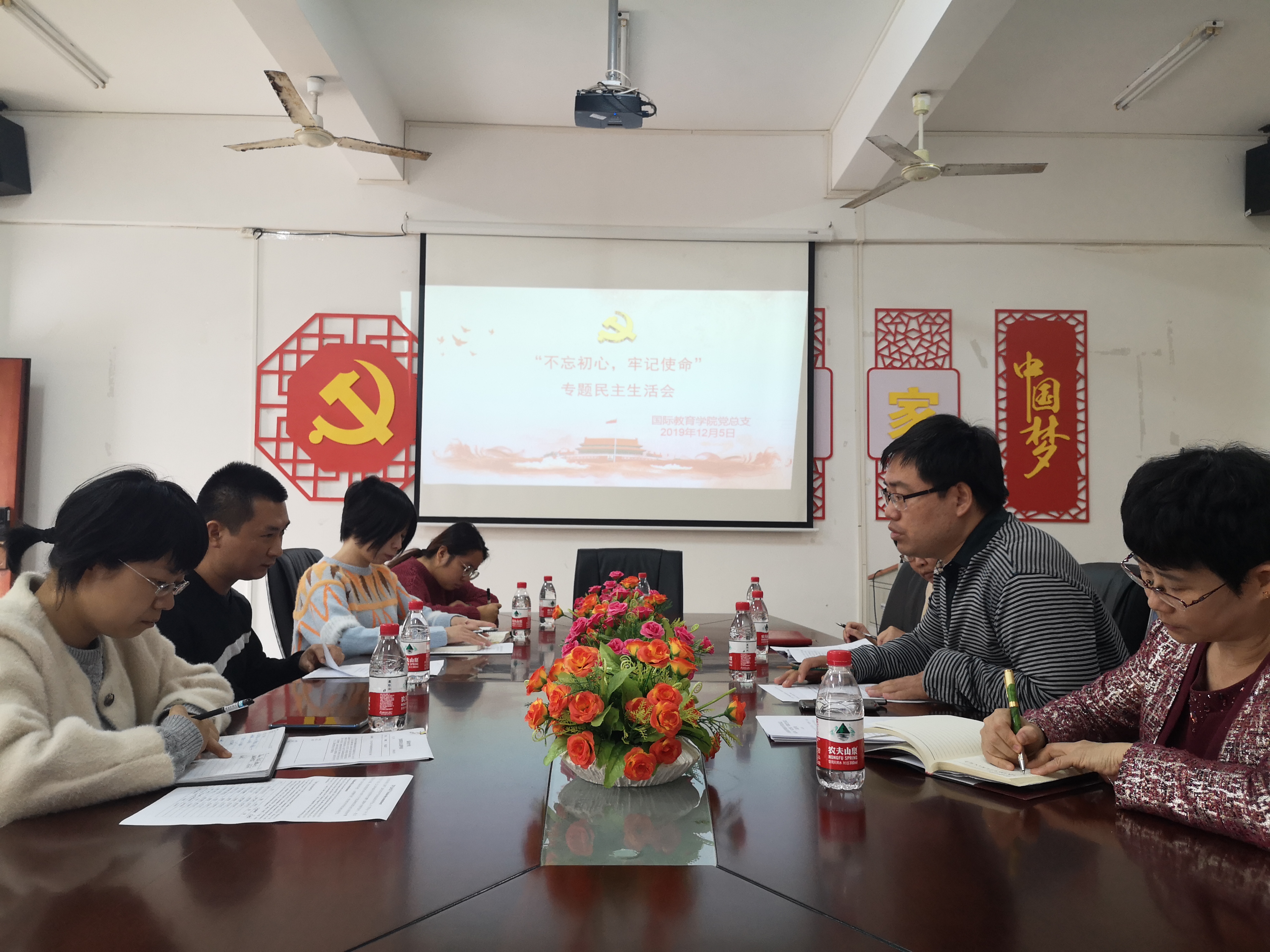 按照公司主题教育部署要求,12月5日,总支在会议室1-323召开“不忘初心,牢记使命”专题民生生活会。会议由于勇副书记主持,出席会议的有张春玲经理,于勇副书记兼副经理、黎瑛副经理,列席的有学工办主任郑艳、教务班主任林仕昌等,党政办公室主任庞新思因上课缺席。 本次召开“不忘初心、牢记使命”专题民主生活会,紧扣学习贯彻习近平新时代中国特色社会主义思想这一主线,聚焦“不忘初心、牢记使命”这一主题,突出力戒形式主义、官僚主义这一重要内容,围绕理论学习有收获、思想政治受洗礼、干事创业敢担当、为中外师生服务解难题、清正廉洁做表率的目标,按照习近平总书记关于“四个对照”“四个找一找”的要求,盘点收获、检视问题、深刻剖析,坚持真理、修正错误,严肃开展批评和自我批评,以钉钉子精神抓好整改,进一步树牢“四个意识”,坚定“四个自信”,做到“两个维护”,履职尽责、团结奋进,牢记初心使命,重整行装再出发,在新时代把党的自我革命推向深入。 于勇副书记主持会议并作总结讲话,民主生活会前,国教院班子同志认真学习研讨,原原本本、原汁原味学原著、读原文、悟原理;采取座谈走访等方式充分发扬民主,充分征求各方意见;深入开展交心谈心;对问题进行了系统梳理,深入剖析根源,形成检视剖析材料,为开好民主生活会打下了坚实基础。 于勇首先代表国教院班子作检视剖析,重点围绕政治、思想、作风等方面查摆问题,并深入剖析根源,提出今后努力方向和改进措施,表示将进一步弘扬斗争精神,从加强国教院自身做起,扎实抓好问题整改,推动全面从严治党向纵深发展,努力争当公司高质量发展的排头兵。 于勇带头作个人检视剖析发言,其他班子同志进行了批评帮助。随后,张春玲经理、黎瑛副经理逐一进行检视剖析,相互开展批评帮助。大家的发言准备充分、联系实际、思考深刻,自我批评刀刃向内、开门见山,勇于解剖自己、揭短亮丑;开展相互批评,实事求是,真点问题、点真问题,做到了抛开面子、动真碰硬、红脸出汗、改进作风、增进感情。实现了接受政治体检、净化政治灵魂、增强解决问题能力、促进班子团结的效果,达到了预期目的。 于勇在总结讲话中指出,我们要以此次民主生活会为基点,对梳理检视的问题,逐条细化整改措施,明确整改任务和时限,坚决推动问题彻底整改,确保主题教育取得切实成效,确保巡视整改要求落实落地。要在坚定理想信念、提升政治能力上做表率,学出信念、学出忠诚,带头提升政治能力,持续深化理论武装;要在牢记宗旨意识、走好群众路线上做表率,始终以人民为中心,自觉增进同人民群众的感情,全心全意为人民服务,将团结和依靠群众作为攻坚克难的法宝,真正做到从群众中来、到群众中去;要在扛好责任担当、埋头真抓实干上做表率,勇于担当使命,不怕艰难险阻,强化进取精神,保持工作韧劲,干在实处、走在前列;要在锤炼过硬作风、净化政治生态上做表率,坚持“实”“严”“廉”,坚持刀刃向内,从全面从严治党抓起,把党的自我革命推向深入;要在坚持知行合一、深化问题整改上做表率,把查和改贯通起来,把学和做结合起来,切实做到边学边改、边查边改、即知即改。 于勇强调,办好国教院的事情,关键在领导班子。开启 “双高公司建设”高质量发展新篇章,必须从领导班子抓起。必须以更高的标准,牢记初心和使命,改进思想和作风,肩负起历史赋予我们的重大责任。