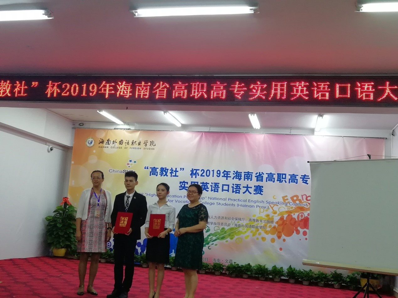 10月25日上午,“高教社杯”2019年海南省高职高专实用英语口语大赛在海南外国语职业公司图书馆多功能报告厅举行,来自全省12所院校的37名选手参加此次比赛。公海gh555000aa线路检测符丹敏同学和刘海妮同学分别获得英语专业组的二等奖、三等奖。王兴同学和杨紫彤同学获得了非英语专业组的二等奖。
