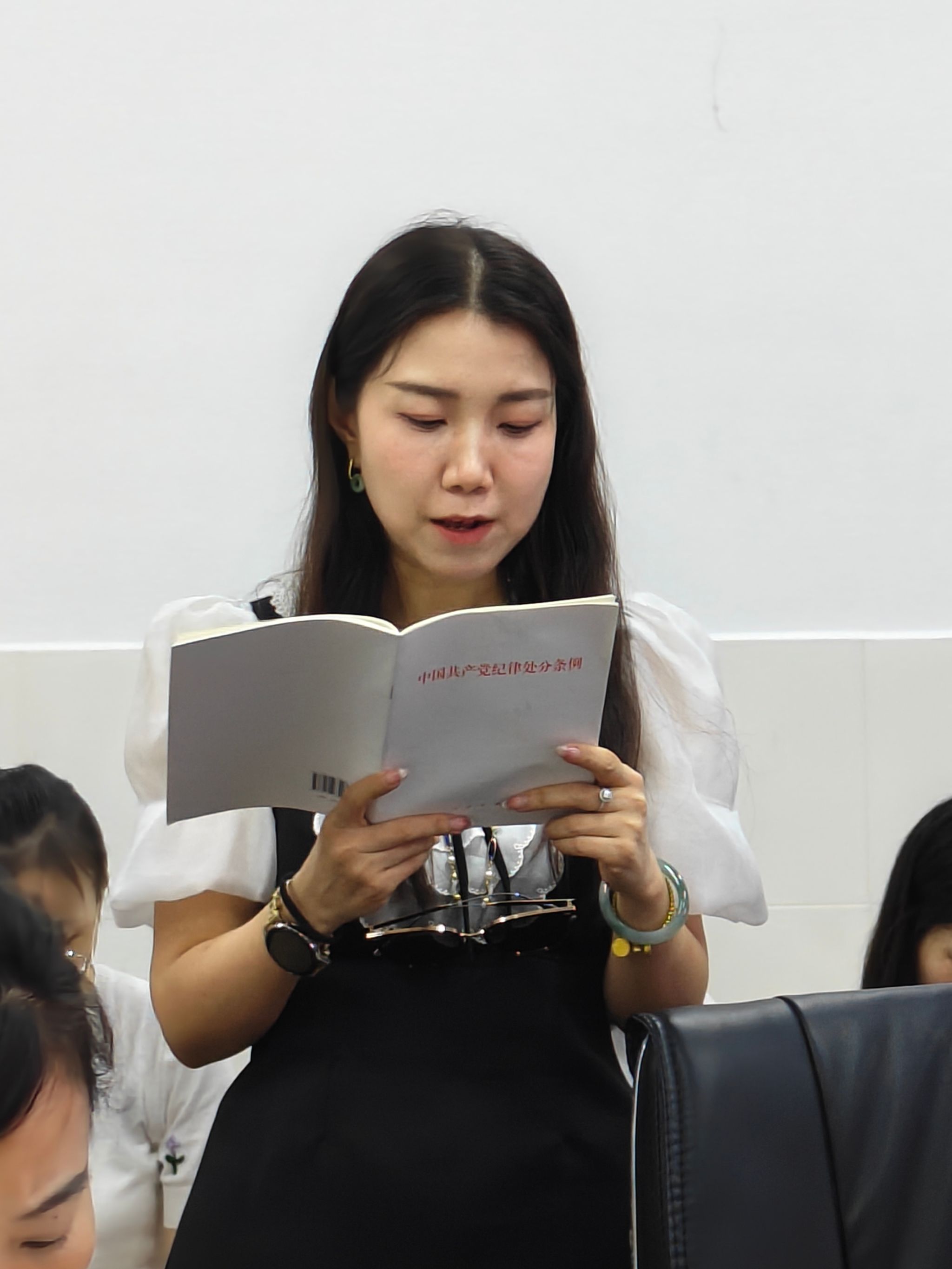 首先,韩大伟同志和李红梅同志带领全体党员学习了第三章《纪律处分运用规则》,逐条学习了从轻或减轻处分的情形,从重或加重处分的情形。随后,易水涵同志和符雪妮同志领学了第四章《对违法犯罪党员的纪律处分》,全体党员学习了对于犯罪党员的纪律处分包括撤销党内职务、留党察看或开除党籍等内容。
