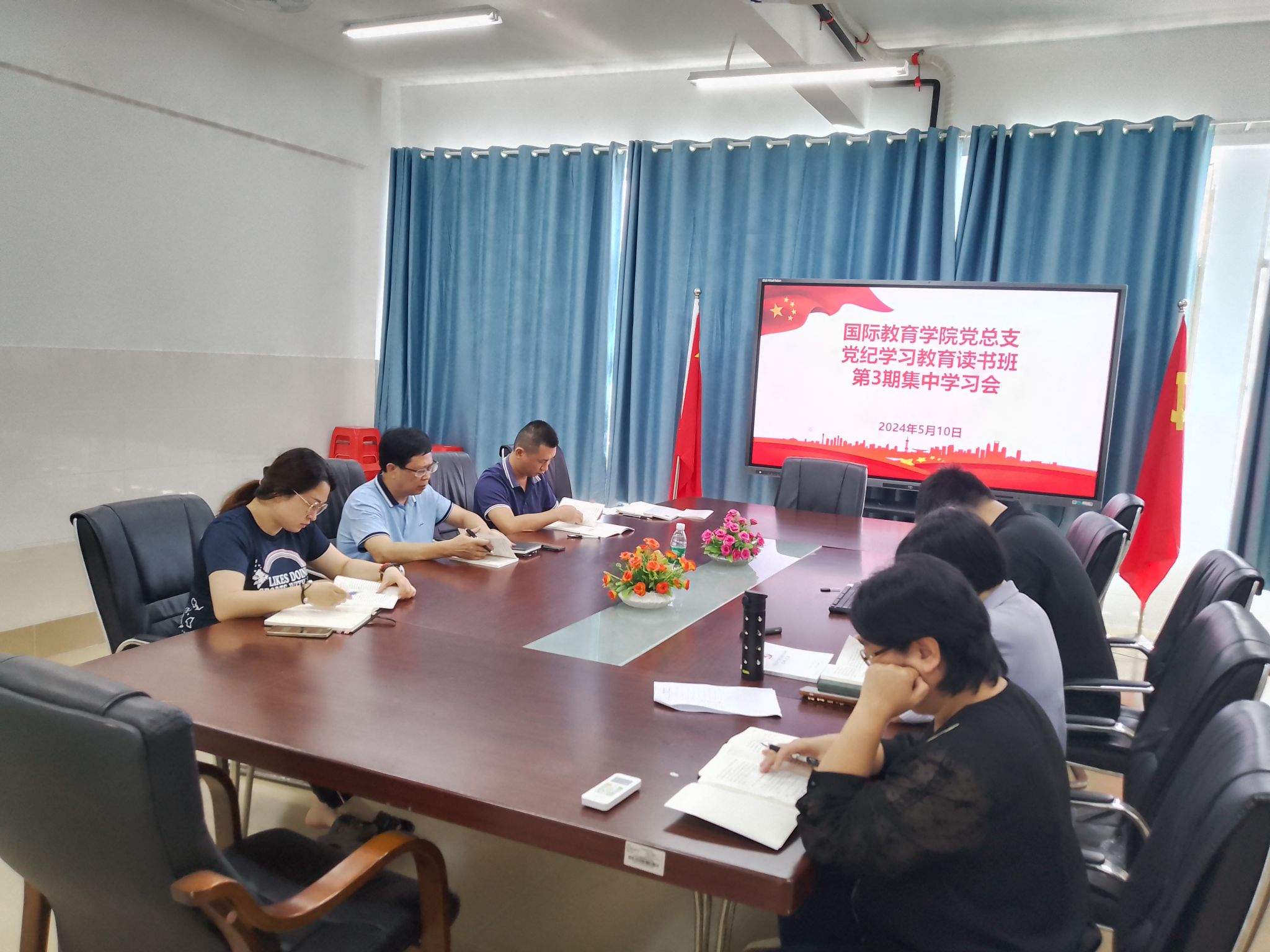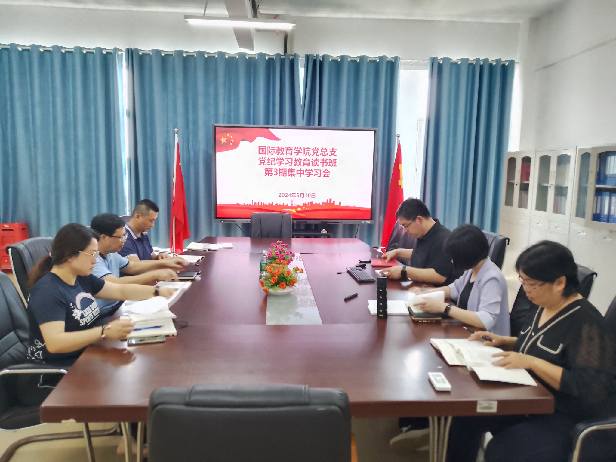 2024年5月10日11点,总支在5-405会议室举行了中国共产党党纪处分条例专题辅导党课第三讲,领学人为郑艳副书记,于勇书记、黎瑛副经理、以及教务办主任林仕昌老师、党政办主任邱裕植老师、学工办主任韩笑老师、党政办秘书孙尧参加了此次党课学习。此次学习会旨在进一步加强公司全体党员和教职工的党纪教育,提高党性修养,确保党的纪律和规矩在公司各项工作中得到严格遵守。