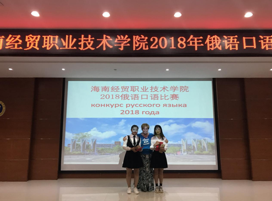 ;第二环节是海南岛景点的介绍。经过两轮选拔17俄语吴红萍同学夺得冠军, 17俄语李小凤、18俄语赵明明获得二等奖,17俄语侯瑶瑶、刑芬芳和18俄语梁昌月获得三等奖的好成绩。