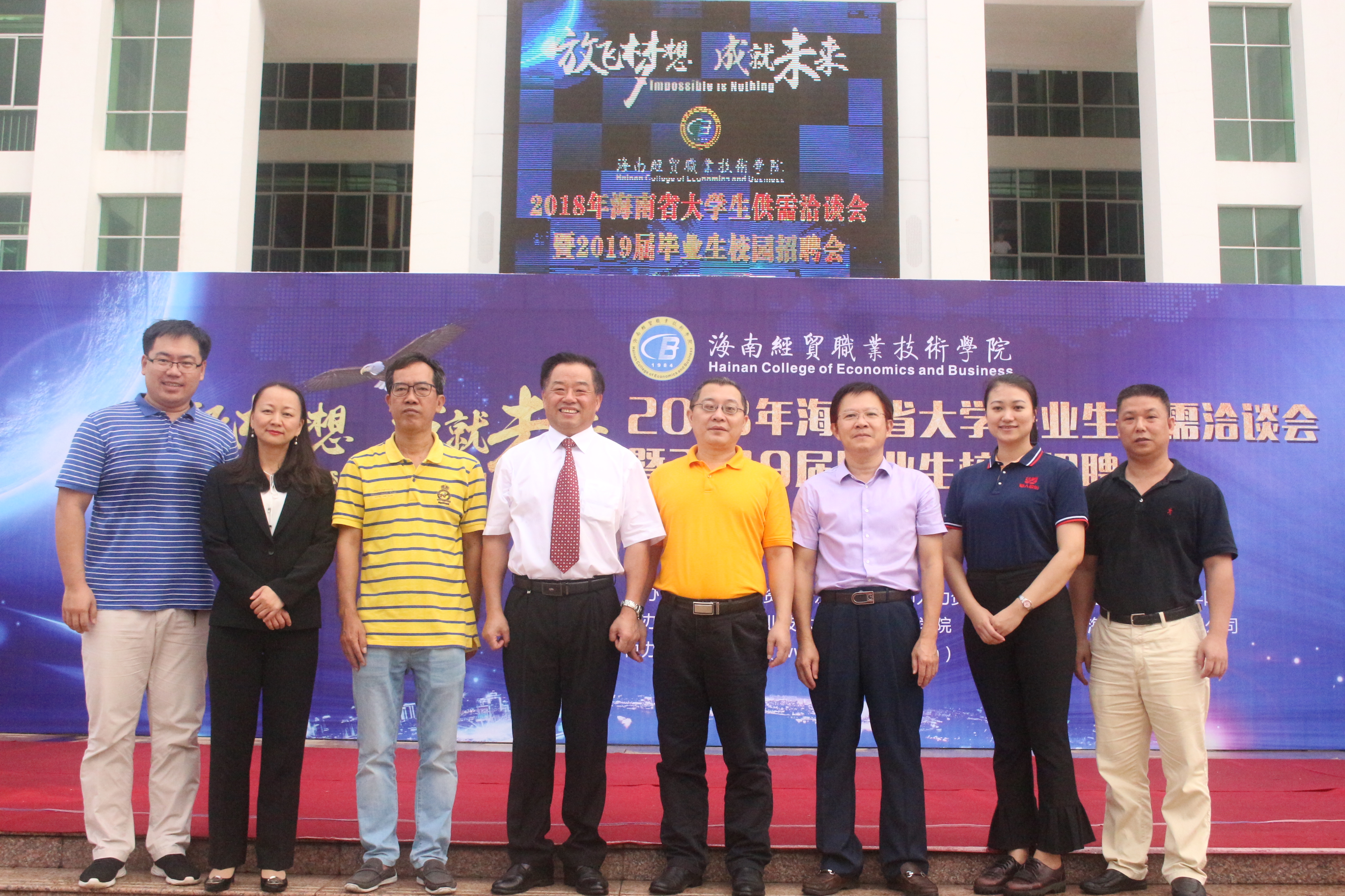 海南省人力资源开发局人才管理服务处调研员唐甸辉、海口市人力资源开发局副局长冯广兴,海南经贸职业技术公司党委副书记、经理黄景贵,党委委员、副经理陈修焕,慧人人力资源(海南)服务有限公司副总经理林春欢,三亚亚龙湾铂尔曼别墅度假酒店运营总监刘春燕出席招聘会开幕式。