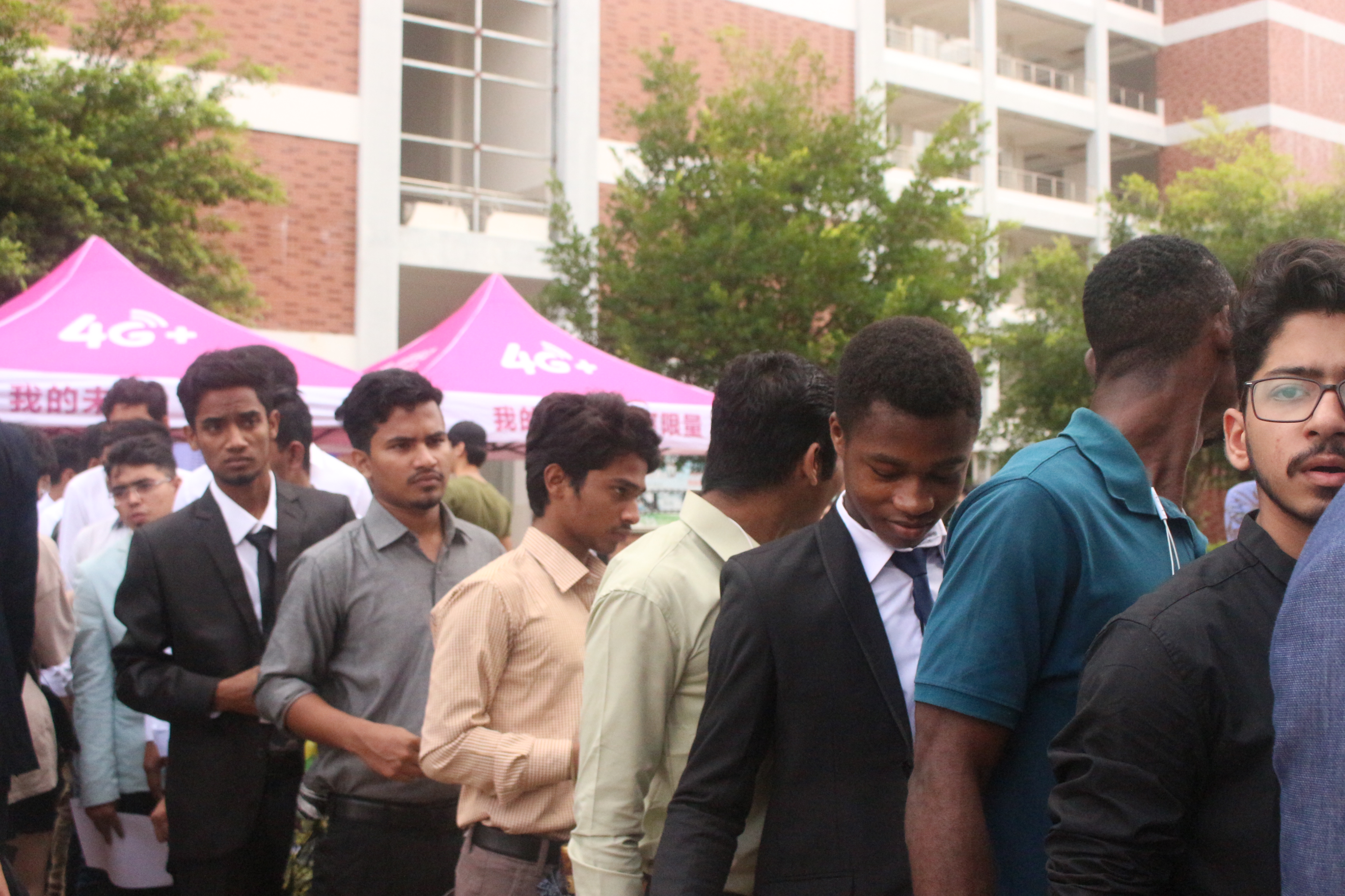 招聘会上,来自公海gh555000aa线路检测的50多名外国职工也带上自己制作的简历,排起了长队,等待企业的面试。有的外国职工直接使用熟练的中文与企业方代表人进行面试。