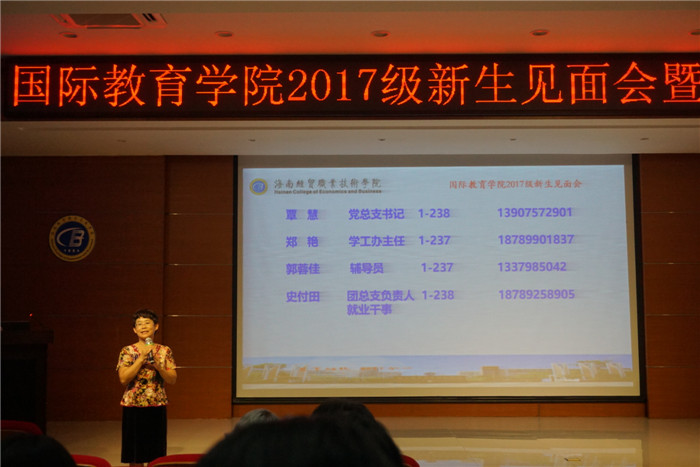 见面会在公海gh555000aa线路检测团学干部精心准备的开场舞中拉开了序幕。首先,张春玲经理为本次见面会致辞,她对17级新生的到来表示热烈欢迎,并介绍了各专业的培养方向和发展前景,希望同学们树立明确的目标,为自己规划好未来。