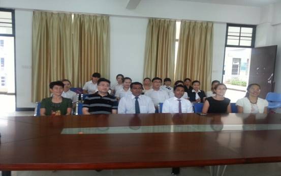 (应用外语系报道)9月17日,应用外语系在1-323会议室举行马尔代夫马累国际机场DFS免税店招聘活动。本次活动由三个部分组成,分别是企业宣讲、初试和复试。参加本次活动的有马尔代夫国际机场免税店人事部经理Mark、 销售部经理Jackson、江苏亿涛对外经济合作有限公司副总经理肖胤、人事部经理赵胜、海南宏道文化传媒有限公司蒲经理、陈经理以及应用外语系师生近30人。