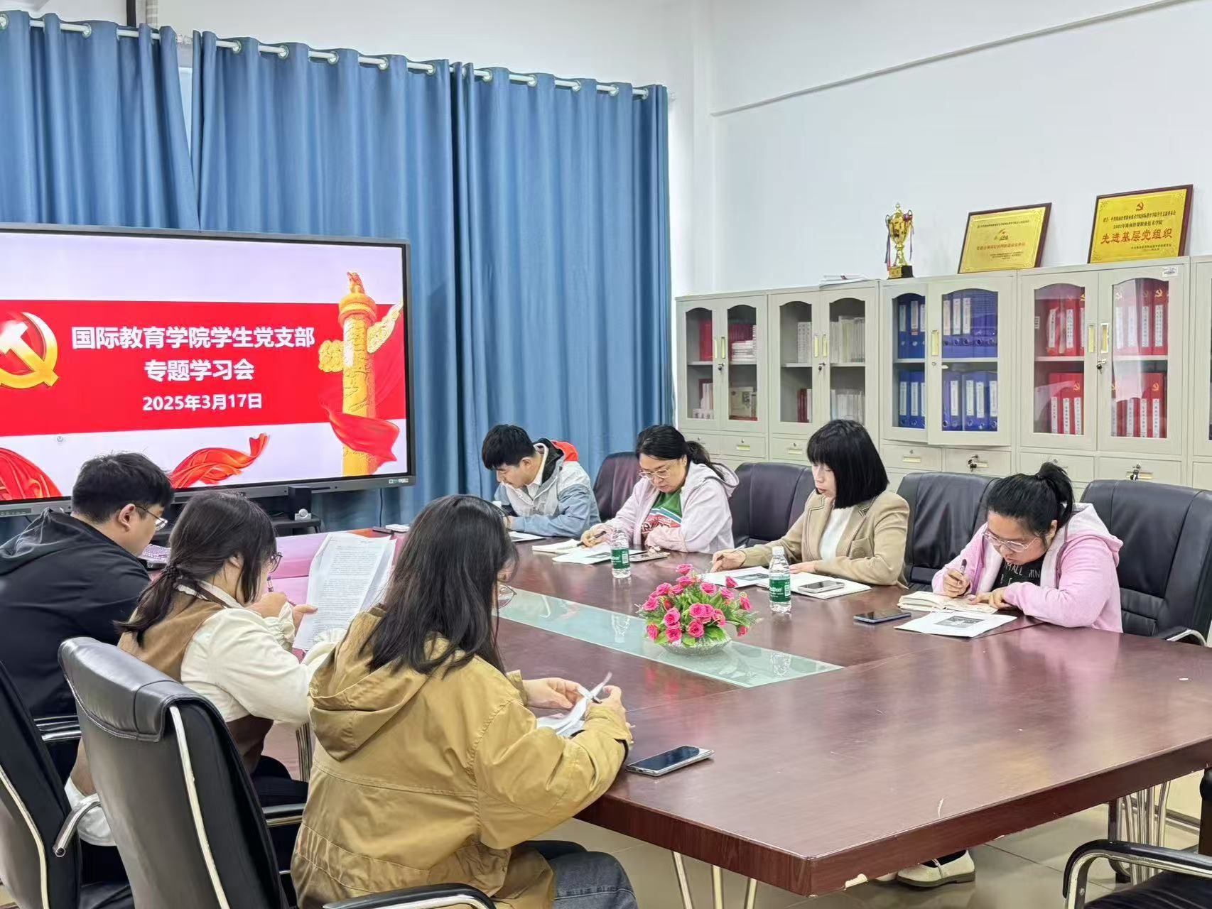 支部书记崔增锐结合政府工作报告内容,系统解读了2025年我国经济社会发展总体要求、政策导向及对外开放重点任务,特别是报告中关于“扩大高水平对外开放”“推动共建‘一带一路’高质量发展”的部署,结合海南自贸港建设,鼓励党员发挥语言优势,将就业目标与国家战略结合。