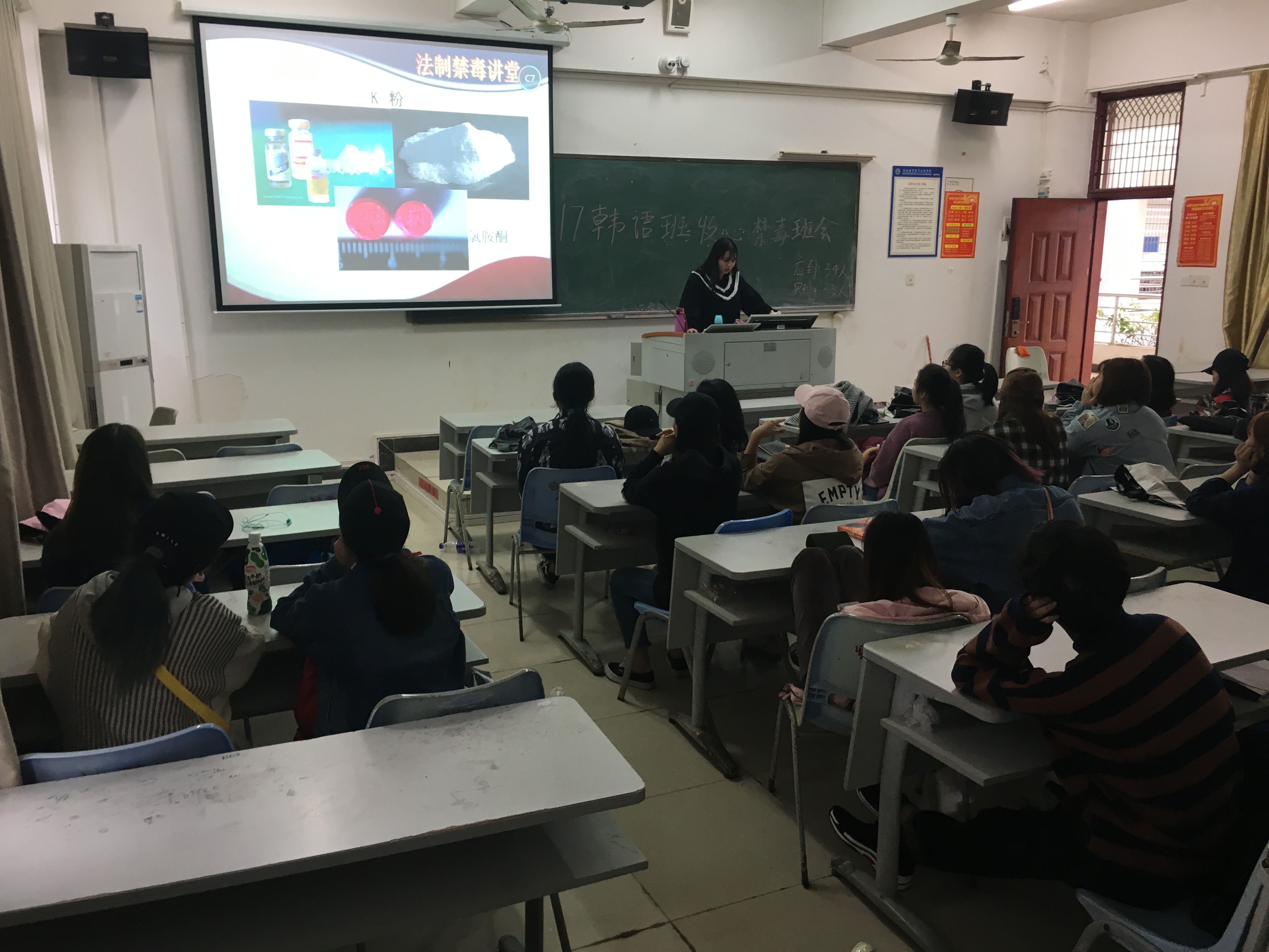 首先,学工办主任郑艳老师通过相关案例从毒品的来源、同学们可能接触到的途径以及毒品吸食后的危害等各方面对“毒品”的相关知识给同学们做了深入的介绍,使同学们更加深刻地感受到毒品对人类的危害。